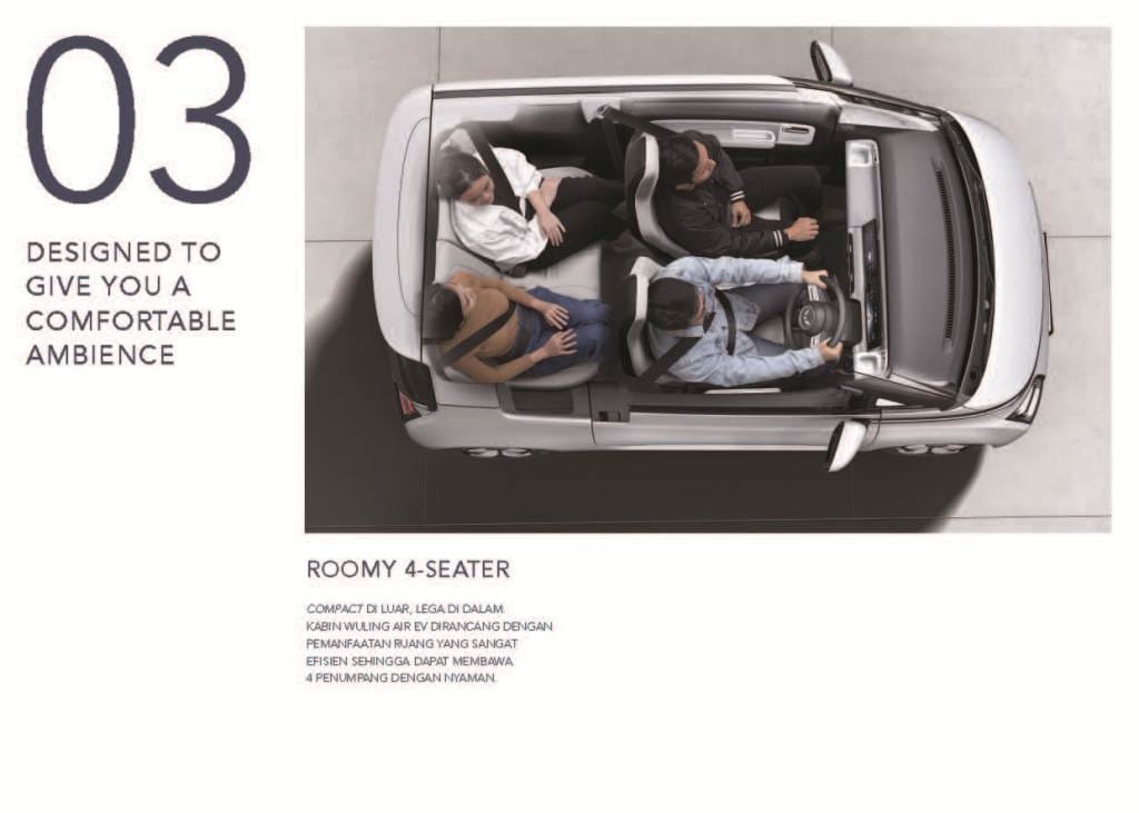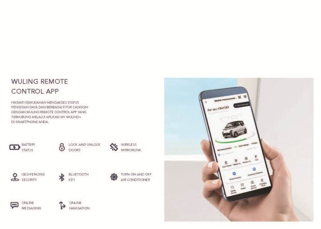 Wuling New Air ev merupakan mobil listrik pertama Wuling yang mengusung desain future-tech. Dengan tagline “Drive For A Green Life”, kendaraan cerdas ini menawarkan smart driving experience dengan fitur-fitur canggih yang disematkan, sehingga membuat perjalanan Anda terasa lebih mudah dan nyaman. Sebelumnya, Mobil listrik Air ev telah dipercaya menjadi Official Car Partner 6 Ajang Internasional Kenegaraan (G20, Asean Summit, AIS, WWF, HLF-MSP IAF) sebagai mobilitas para delegasi serta organisasi internasional hingga bulan September 2024.